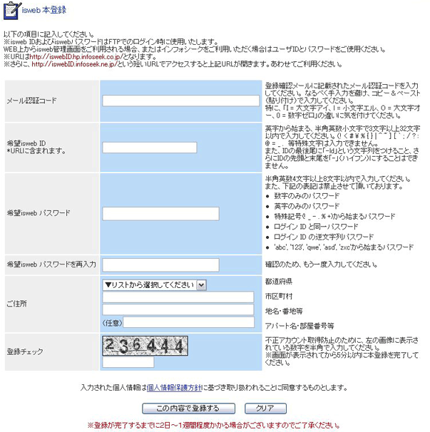 全て入力できたら「この内容で登録する」をクリックしましょう。